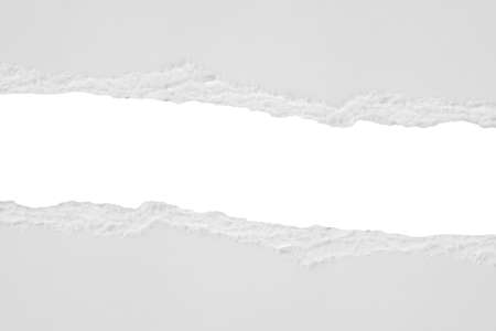 Gray paper piece with torn edge. Ripped stripe