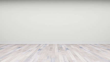Empty room with white wall and wooden floor. 3D rendering.