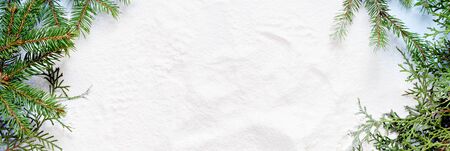 Christmas (New Year) background with place for text. Background for the demonstration of works or text. View from above. Copy space. Preparing for Christmas. Christmas tree branch