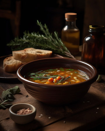 An AI generated illustration of A close-up shot of a bowl of vegetable soup