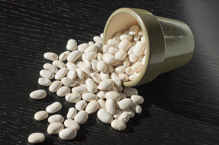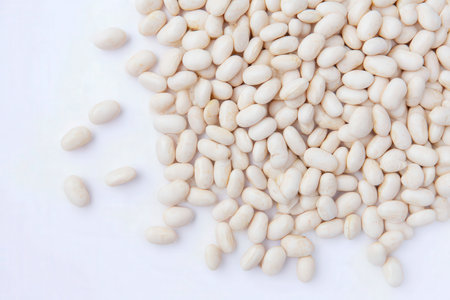 A close-up view of fresh raw white beans, showcasing their smooth texture and neutral color. Perfect for healthy cooking and nutritious recipes.