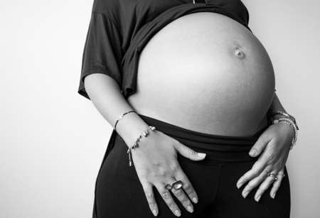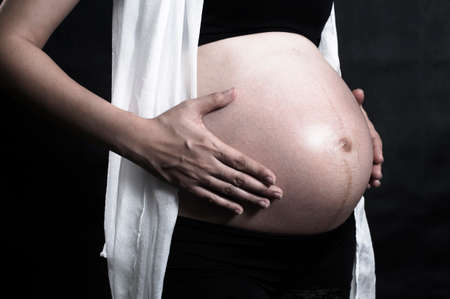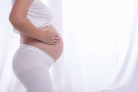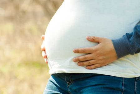 Pregnancy, motherhood concept. Close-up of a pregnant belly. Relaxing position.