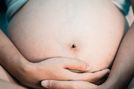 Pregnant women are caught her stomach with love and take care of children in the womb to be healthy