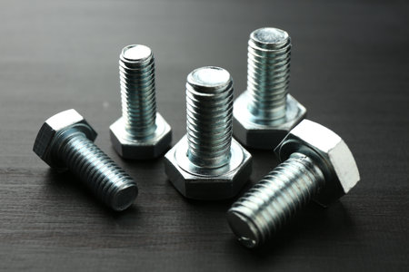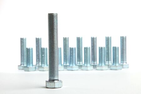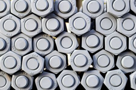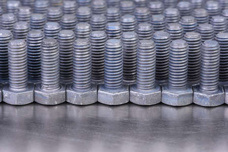 texture background of custom hex head bolt screw thread on tray with any light direction in studio
