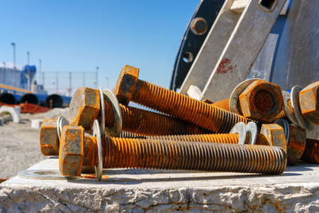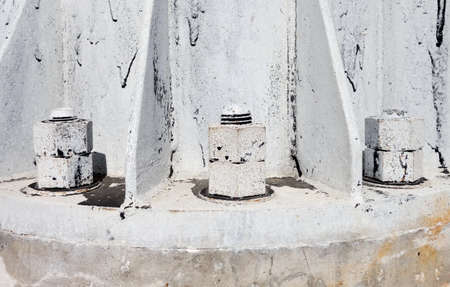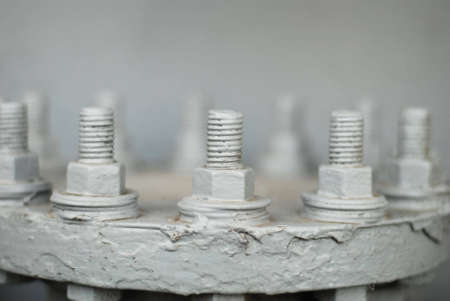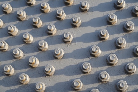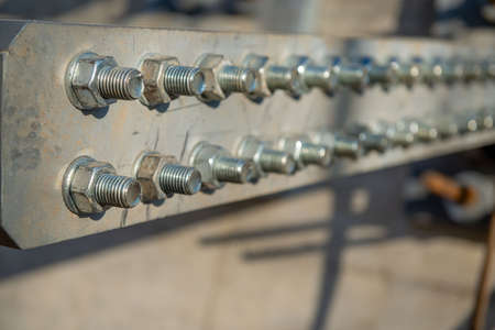 Many huge bolts and nuts connect bridge elements. The concept of a super strong design.