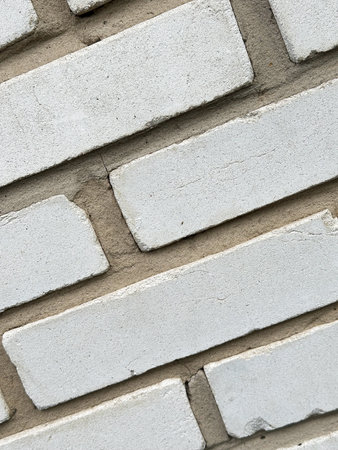 White brick wall close-up background. Build block modern retro interior. Architecture texture