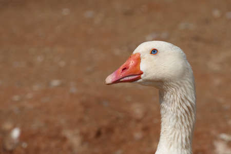 Close-up photo of goose head. Countryside farming