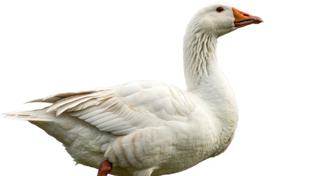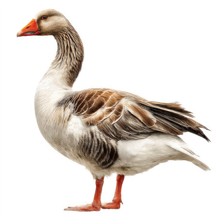 This isolated cutout features a goose displaying intricate feather patterns and vibrant colors, ideal for nature-themed projects.