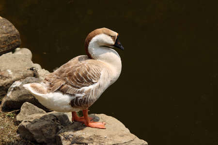 Anser cygnoides Also called the Capitol Goose in a garden