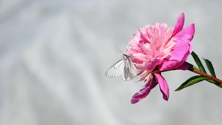 Aporia crataegi, Pieris crataegi, butterfly feeding on a pink flower