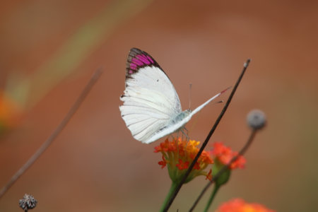 Butterfly on a flower in the veld, closeup of photo in South Africa.