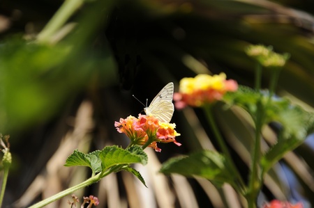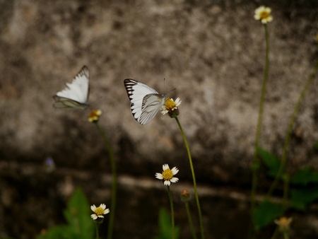 White Butterfly Sucking Sweet Nectar On Small Flower