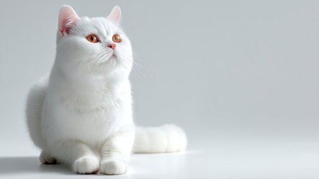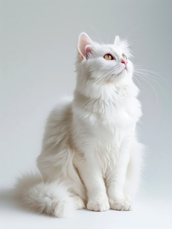 The elegant posture of a pure white cat, the gentle gaze of a snowy cat