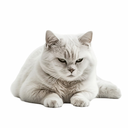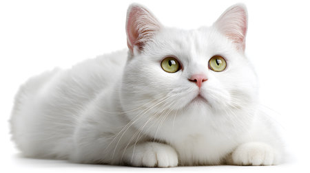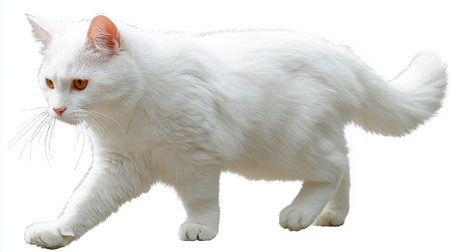 Elegant White Cat Isolated on White Background - Professional Animal Photography