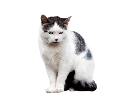 White mixed-breed cat facing at the camera(2 years old), isolated on white, instagram filtered