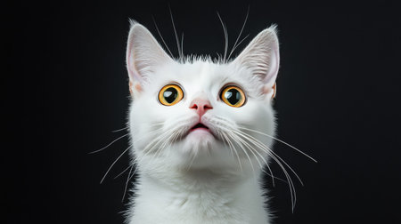 AI Generated. Majestic white cat with striking amber eyes gazing into the distance on black background