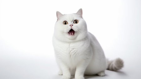 funny white fat cat, shout with shocked expression. funny cat looking shocked with mouth open
