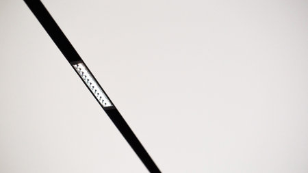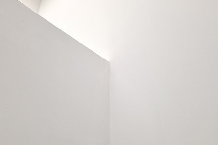 Construction details: Plastered board ceiling and wall corner with reflecting of fluorescent light