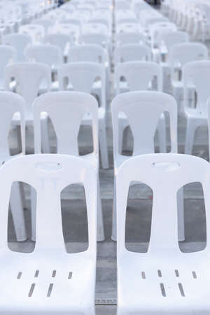Conference room with plastic chairs detail and yellow floor. Horizontal
