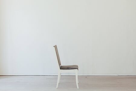 Empy loft style chair over blank wall background wit a lot of copy space for text. Available job position, interview or negotiations concept.