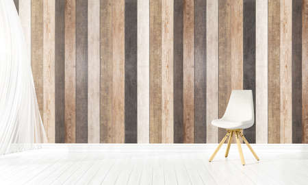 Minimalist Aesthetic Dining Chair Against White Wall in Contemporary Room with Wood Accents