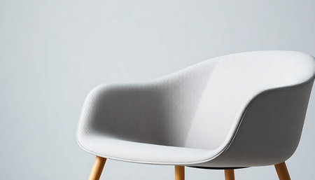 Minimalist white chair with sleek design isolated on a light gray backdrop, emphasizing modern furniture aesthetics