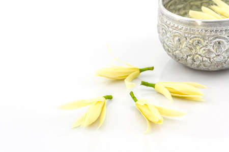 Champee Thai Flowers with green leaf isolated on white backgrounds