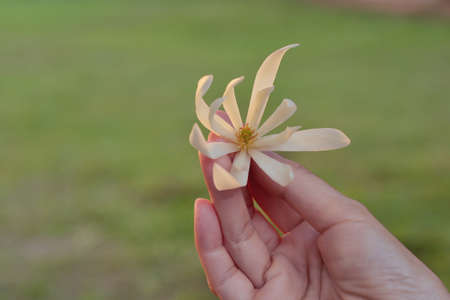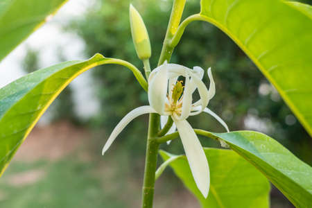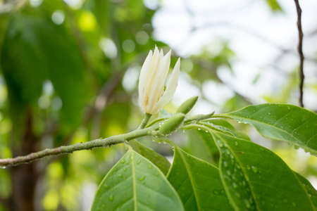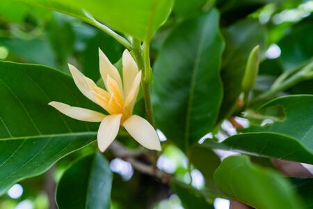 White Champaka flower or Michelia alba. have smells aroma on green tree in garden