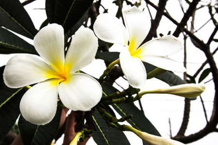 Frangipani tropical flowers from deciduous tree, plumeria.