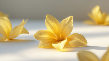 AI Generated. Lush Golden Yellow Flower Petals in Soft Natural Light