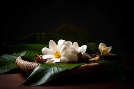 Michelia alba, White Champaka, White Sandalwood flower, tropical fragrance flower isolated on black background