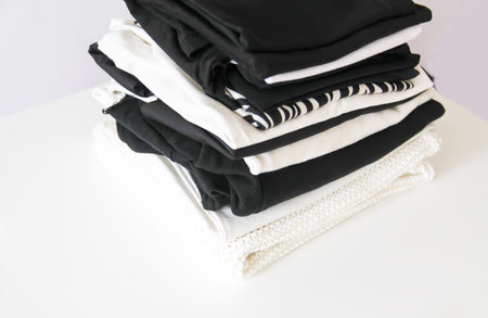A monochrome capsule wardrobe made up of versatile black and white pieces eliminating the need for excessive shopping and providing endless outfit possibilities