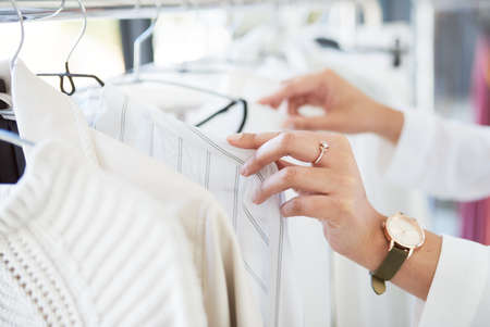 Everyone loves to shop. Cropped shot of an unrecognizable woman looking through a railing of clothing in a boutique.