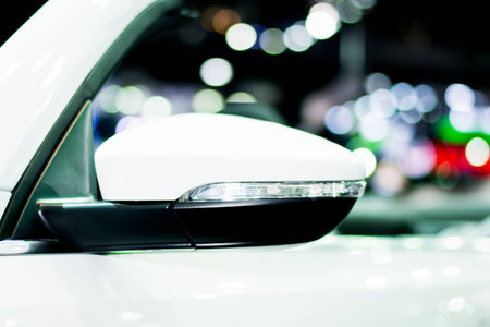 Blurred background with modern luxury white car . Car exterior details. Soft lightning