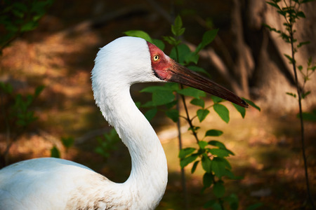 Portrait of a beautiful white neck crane in nature