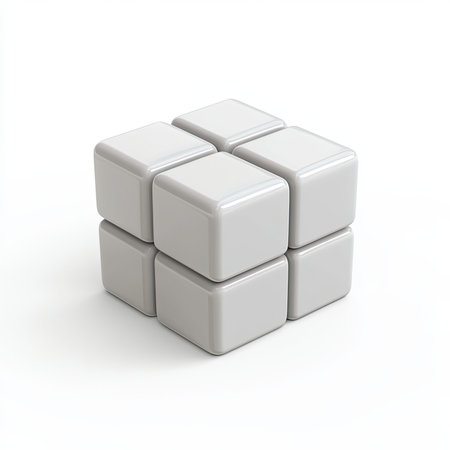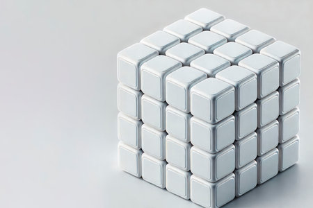 White cubes assembled, studio shot, blank background, modular design