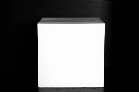 White cube box packaging on a black background. Gift white box