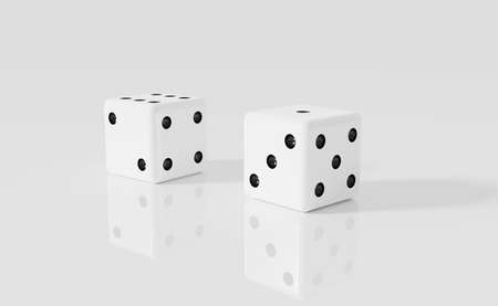 Dice 3d rendering. Two white dice 3d illustration.