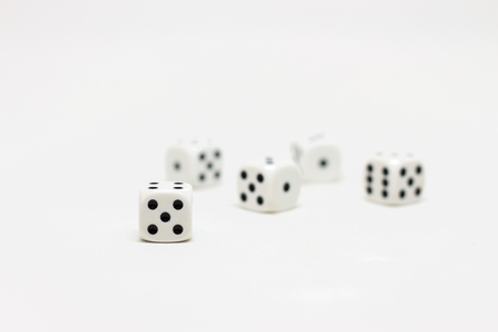 Playing white dice on a light background closeup