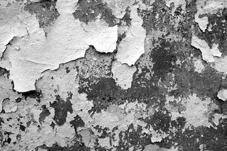 Old wall with white paint peeling off texture in black and white tone