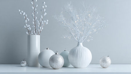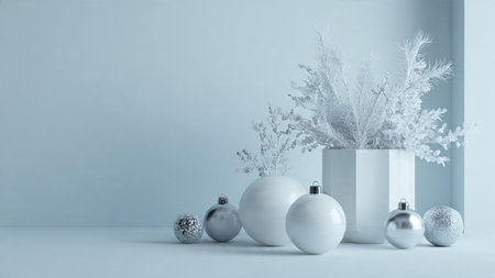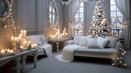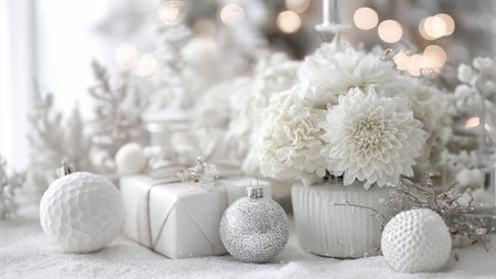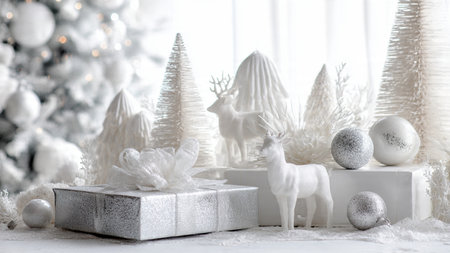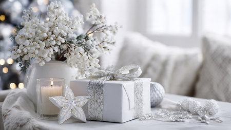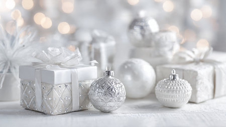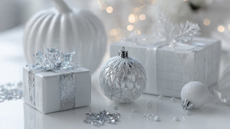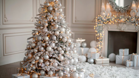 holiday decor white christmas tree adorned with silver ornaments and twinkling lights, for a sophisticated and elegant festive ambiance