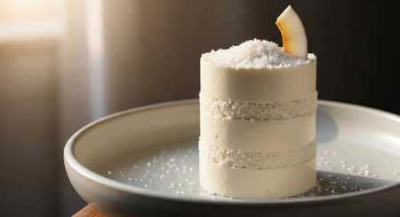 coconut cake top view on the white plate