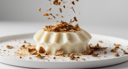 AI Generated. Truffle Flakes Falling on a Decadent Dessert