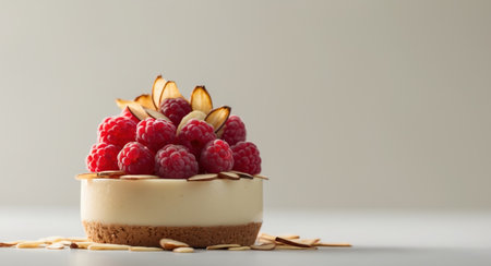 AI Generated. A dessert with raspberries and almonds on top of it