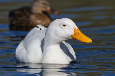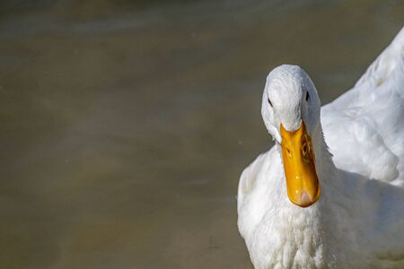 Closeup of a Common White Domestic Duck in Water