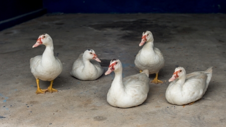 White pekin ducks (also known as aylesbury or long island ducks) in summer