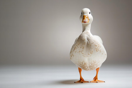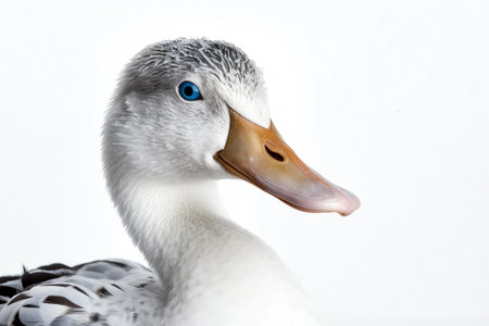 White duck on a white background, studio shot, close-up