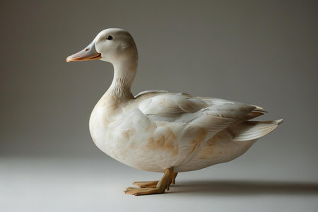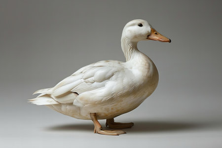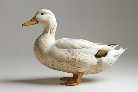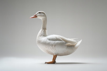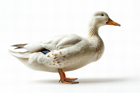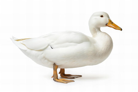 Digital image of white duck, full body side view, white background, high resolution photography