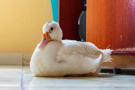 The elegant posture of a pure white duck, the cute duck photo in a fresh background