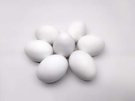 Close up of many white eggs background. Raw eggs on a white backlit platform